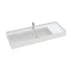 Bei einem Waschtisch aus einem Guss handelt es sich um ein Waschtisch, das direkt in die Arbeitsplatte integriert ist, wodurch ein stilvolles und exklusives Aussehen entsteht. Die meisten Badezimmerwaschtische sind einteilig, aber ein Küchenwaschtisch wird oft in eine Arbeitsplatte eingebaut, was den Unterschied ausmacht, da das einteilige Waschtisch aus einem Stück besteht. Dadurch entsteht eine nahtlose Oberfläche ohne sichtbare Fugen, was sowohl die Ästhetik verbessert als auch die Reinigung erleichtert.