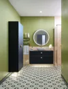 Ein Waschtischunterschrank mit Waschtisch ist nur ein Teil des Ganzen – betrachten Sie Ihr Badezimmer als Gesamtkonzept. Überlegen Sie, wie der Waschtisch mit anderen Möbeln wie Hochschränken, Wandregalen und Spiegeln harmoniert. Für ein einheitliches Design können Sie Möbel aus derselben Serie wählen, die perfekt aufeinander abgestimmt sind, was Farben und Materialien betrifft.