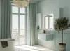 Ein Waschtischunterschrank mit Waschtisch ist nur ein Teil des Ganzen – betrachten Sie Ihr Badezimmer als Gesamtkonzept. Überlegen Sie, wie der Waschtisch mit anderen Möbeln wie Hochschränken, Wandregalen und Spiegeln harmoniert. Für ein einheitliches Design können Sie Möbel aus derselben Serie wählen, die perfekt aufeinander abgestimmt sind, was Farben und Materialien betrifft.