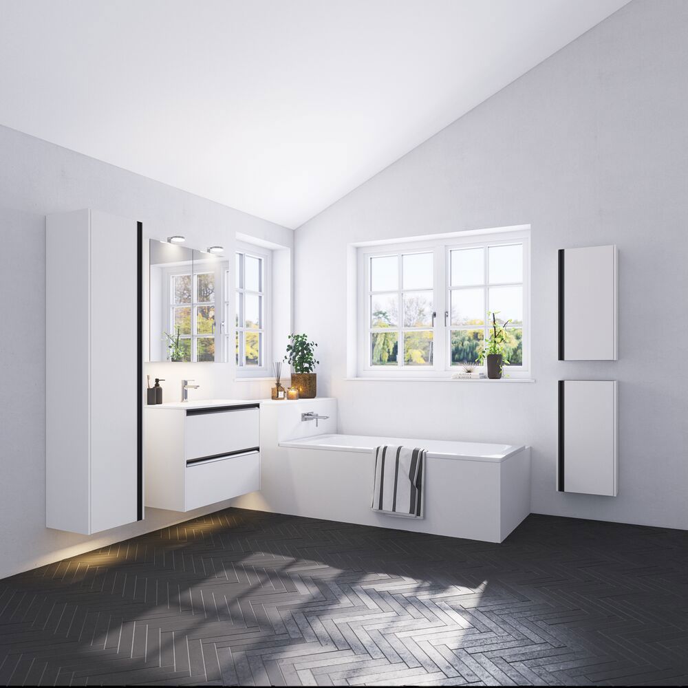 Wenn Sie viel Platz in Ihrem Bad haben, können Sie problemlos mehrere Hochschränke aufstellen, um zusätzlichen Stauraum zu schaffen. Aber denken Sie daran, dass Sie Hochschränke nicht nur in Ihrem Badezimmer, sondern auch in Ihrer Garderobe, Ihrem Wohnzimmer oder anderswo verwenden können. Mit der Serie Calidris erhalten Sie Hochschränke und Schränke in verschiedenen Höhen, so dass Sie mehrere Schränke nebeneinander stellen können, um ein schönes und interessantes Möbelstück zu schaffen, bei dem Sie die Oberseite der Schränke für Dekorationen oder Pflanzen nutzen können.