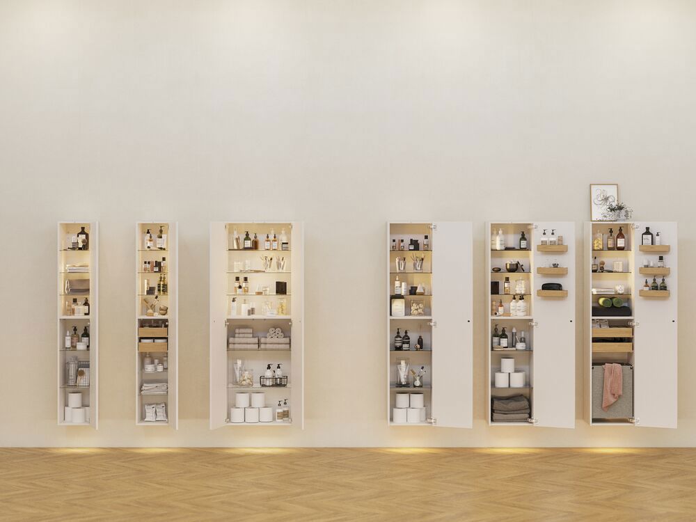 Für kleinere Bäder kann ein schmaler Hochschrank die perfekte Lösung sein. Sie können Schränke mit einer Tiefe von nur 16 cm wählen, die auch in die kleinsten Räume passen. Wenn Sie den nötigen Platz haben, können Sie mehrere Hochschränke miteinander kombinieren, um ein schönes Arrangement zu schaffen, das sowohl praktisch als auch dekorativ ist.