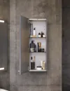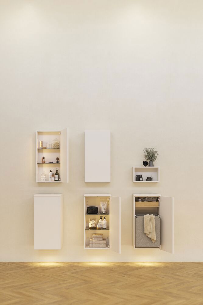 Um den vollen Überblick über Ihre Gegenstände in den Oberschränken zu behalten, können Sie für die meisten Oberschränke auch eine Innenbeleuchtung wählen. Das schafft nicht nur eine gemütliche Atmosphäre im Bad, sondern erleichtert auch das Auffinden von Gegenständen.