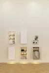 Sie können auch mehrere Schränke in verschiedenen Höhen nebeneinander aufhängen, um einen aufregenden Look zu erzielen, bei dem Sie auch die Oberseite des Schranks als Stauraum nutzen können.