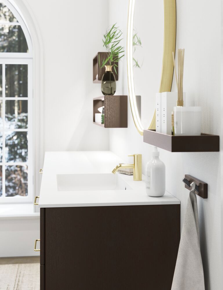 Das hängt von Ihrem Stil und Ihren Bedürfnissen ab. Wenn Sie etwas Natürliches und Lebendiges wünschen, werfen Sie einen Blick auf unsere Holz-Tischplatten. Träumen Sie von einem einheitlichen und modernen Look? Dann ist eine Glas-Tischplatte wie Form eine perfekte Wahl. Wenn Sie Wert auf minimale Pflege und ein luxuriöses Gefühl legen, könnten Silestone® oder Solid Surface die richtige Option für Sie sein. Und für ein schlichtes und funktionales Zuhause bleibt Laminat ein sicherer Gewinner. Es gibt keine pauschale Antwort – aber wir haben die Lösung, die zu Ihrem Badezimmer passt.