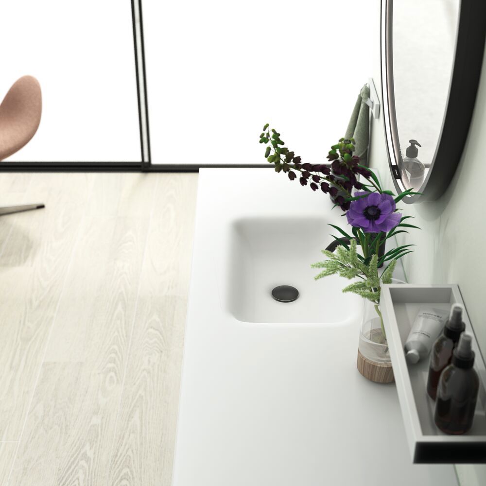 - Solid Surface ist ein vielseitiges und modernes Material mit einer matten, seidenglatten Oberfläche. Unsere Solid Surface-Waschtische sind ultradünn und verleihen dem Waschtisch ein minimalistisches und stilvolles Aussehen. Das Material ist mit normalen Reinigungsmitteln leicht zu pflegen - denken Sie nur daran, keine Scheuermittel für den Waschtisch zu verwenden.