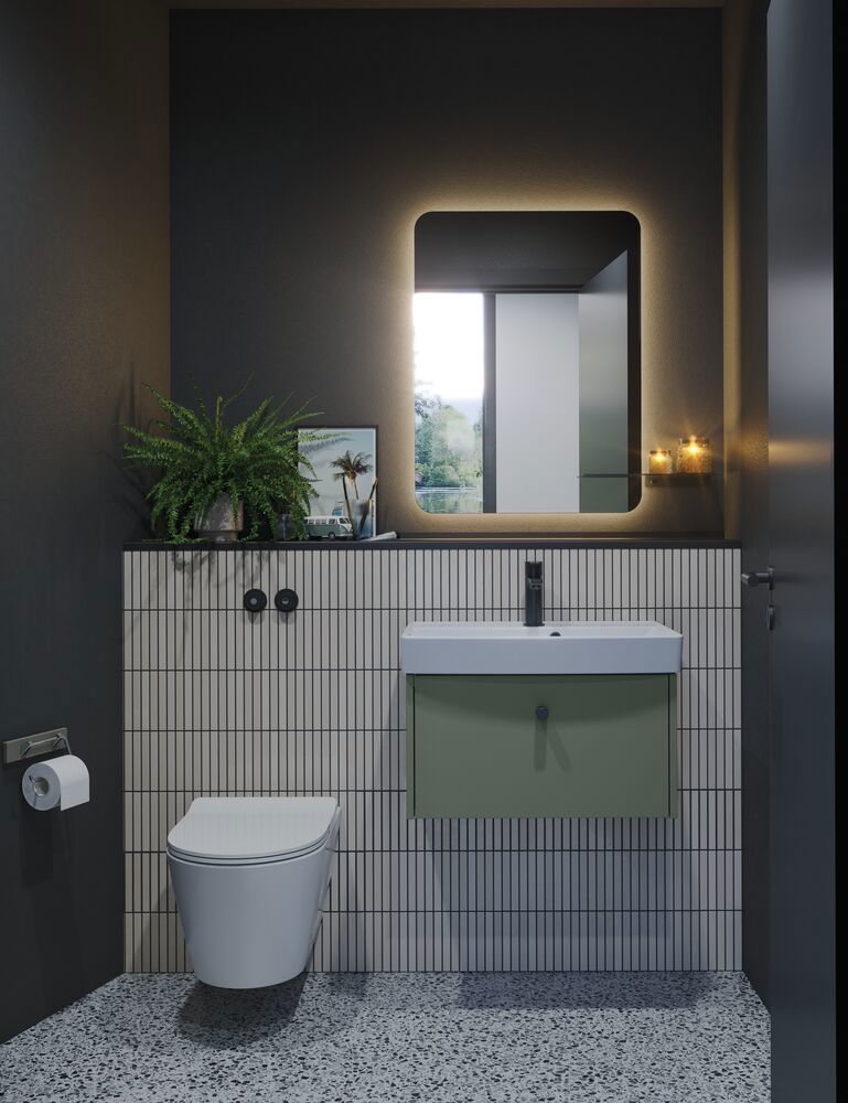 Ein Waschtischunterschrank mit Waschtisch ist nur ein Teil des Ganzen – betrachten Sie Ihr Badezimmer als Gesamtkonzept. Überlegen Sie, wie der Waschtisch mit anderen Möbeln wie Hochschränken, Wandregalen und Spiegeln harmoniert. Für ein einheitliches Design können Sie Möbel aus derselben Serie wählen, die perfekt aufeinander abgestimmt sind, was Farben und Materialien betrifft.