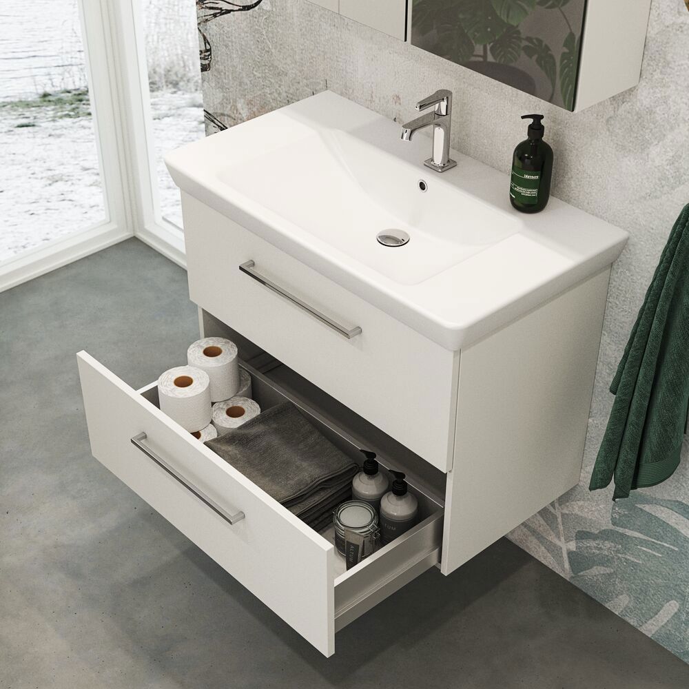 Ein Waschtischunterschrank mit Schubladen ist die perfekte Lösung, wenn Sie sowohl Funktionalität als auch Stil in Ihrem Badezimmer suchen. Die Schubladen ermöglichen einfachen Zugang zur Aufbewahrung und helfen dabei, Ordnung zu halten, während sie alles Praktische verdecken. Bei Dansani bieten wir Waschtischunterschränke mit Schubladen in verschiedenen Serien an, die dänisches Design mit hoher Qualität und Langlebigkeit kombinieren. Egal, ob Sie einen kompakten 50 cm Waschtischunterschrank mit Schubladen oder eine geräumigere Lösung suchen, bei unserer großen Auswahl finden Sie das passende Modell für Ihr Badezimmer.