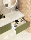 Flexible Aufbewahrungslösungen: Unsere Waschtischunterschränke mit Schubladen sind in verschiedenen Konfigurationen erhältlich, darunter Schränke mit 1 oder 2 Schubladen sowie 1 Schublade und ein offenes Fach. Dies gibt Ihnen die Möglichkeit, genau die Aufbewahrungslösung zu wählen, die am besten zu Ihren Bedürfnissen passt.