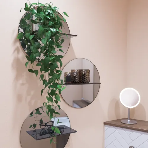 Erzielen Sie zusätzliche Effekte mit dem Minispiegel und der dazugehörigen Ablage. Ein Spiegel als Deko ist Trend und dieser getönter Spiegel mit getönter Ablage setzt Akzente. Stilvoll und schön.