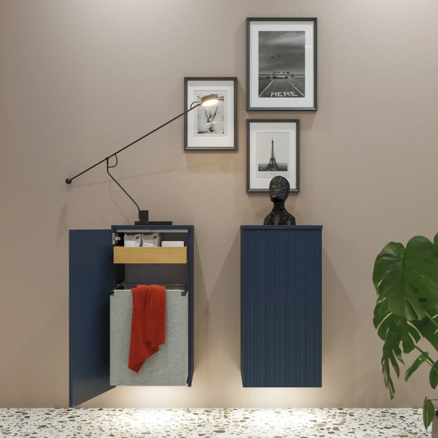Je weniger Dinge im Bad auf dem Boden stehen, umso aufgeräumter ist das Bad. Das macht sich auch beim Putzen bemerkbar. Es gibt mehrere Varianten den Wäschekorb im Bad zu positionieren. Eine davon ist die Wandbefestigung, wobei darauf geachtet werden muss, dass Sie den Korb zum Transportieren abnehmen können. Die beste Variante ist die Verstauung im Schrank, damit ist der Wäschekorb praktisch unsichtbar und nimmt keinen Platz im Bad weg.