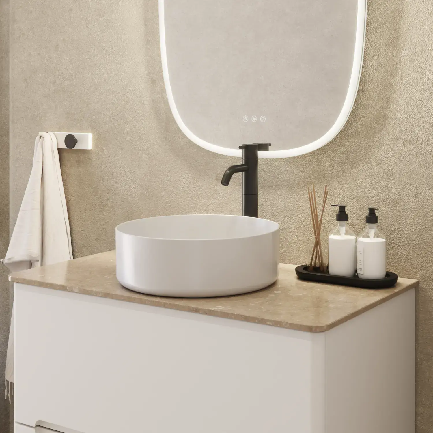 Erhältlich in eleganten Farbtönen wie matt Weiß, matt Hellgrau und matt Dunkelgrau, die eine ruhige, raffinierte Atmosphäre im Badezimmer unterstreichen.