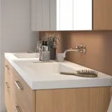 Ganz gleich, ob Sie Ihr Badezimmer nur ein wenig aufpeppen wollen, oder eine größere, durchgreifende Renovierung planen, wir haben eine Lösung, die zu Ihnen passt. Mit einem doppelten Waschbecken für das Badezimmer können sich mehrere Personen gleichzeitig im Badezimmer aufhalten und einen ruhigen Morgen genießen, so wie Sie es verdienen. Nutzen Sie die zusätzliche Zeit, die sich durch einen Doppelwaschtisch im Badezimmer bietet, indem Sie etwas länger zusammen am Frühstückstisch sitzen, bevor sich alle in ihren Alltag stürzen.