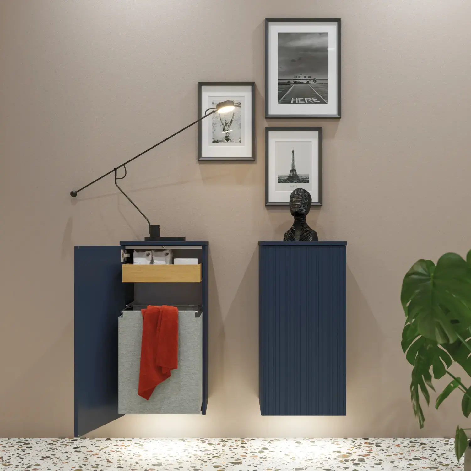 Hohe Waschtischunter-schränke mit viel Stauraum