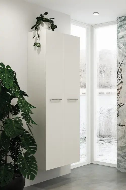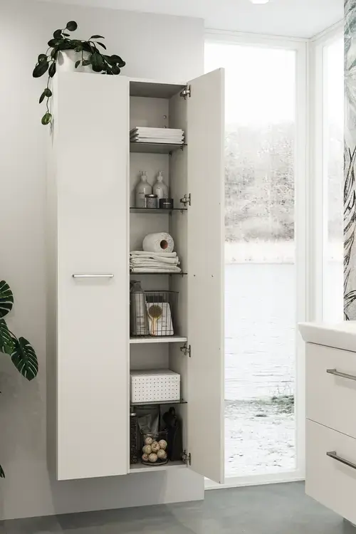 Die klassische Lösung zur Schaffung von zusätzlichem Stauraum ist ein Hoch-, Ober- oder Unterschrank an der Wand in der Nähe des Waschtisches. Meist gibt es jedoch viel mehr ungenutzten Wandplatz im Raum, der sich zum Beispiel hinter der Tür oder über dem Heizkörper befindet. Ganz gleich, ob Sie ein kleines oder großes Badezimmer haben, können Sie mit Hoch-, Ober- und Unterschränken zusätzlichen Aufbewahrungsplatz schaffen.