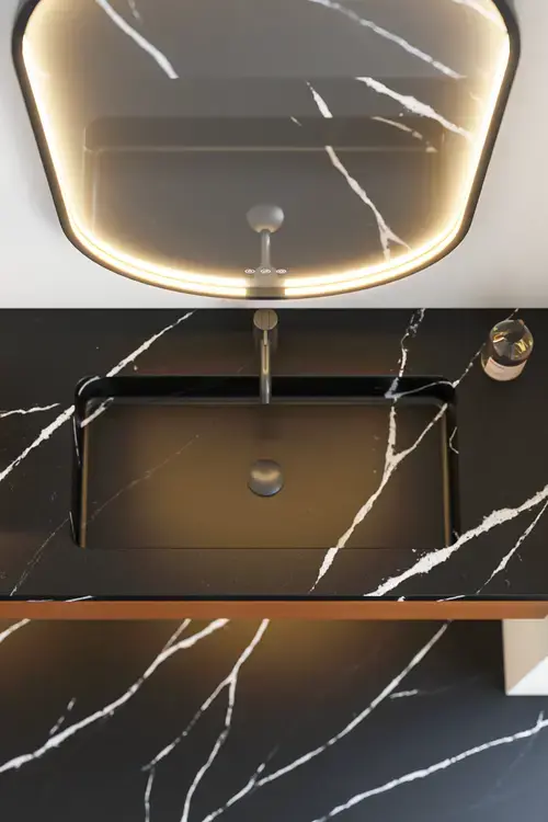Wenn Sie gern viel Tischfläche haben möchten, damit die Utensilien immer zur Hand sind, können Sie sich für einen asymmetrischen Waschtisch entscheiden. Wir haben viele Möglichkeiten, um Ihren Wünschen und Bedürfnissen gerecht zu werden und bieten asymmetrische Waschtische in mehreren verschiedenen Designs und Materialien an. Wählen Sie aus verschiedenen Standardlösungen oder einer unserer maßgeschneiderten Lösungen, die ungeachtet der Größe und Form perfekt in Ihr Badezimmer passen.