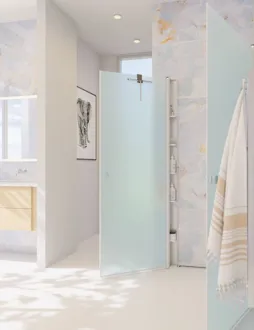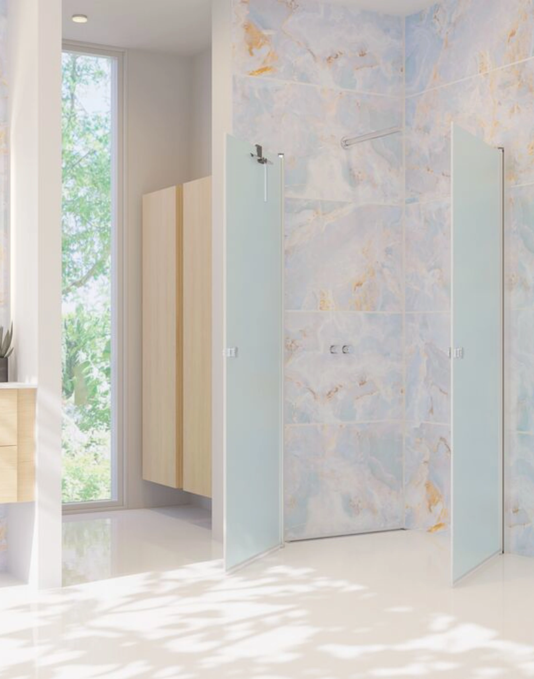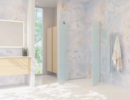 Die Drehtüren bringen sowohl Eleganz als auch Funktionalität in Ihr Badezimmer. Die Türen sind äußerst praktisch und benutzerfreundlich, da sie sowohl nach innen als auch nach außen geöffnet werden können. So können Sie in Ihrem Bad Platz schaffen, wenn die Dusche nicht benutzt wird. Die Drehtüren öffnen und schließen sich leicht und leise an robusten Scharnieren und ermöglichen einen problemlosen Zugang zur Dusche. Gleichzeitig bieten sie einen effektiven Sichtschutz, der das Wasser im Duschbereich zurückhält und den Rest des Badezimmers trocken und sauber hält. Das gehärtete Glas in den Türen ist mit EasyCare behandelt, was die Haltbarkeit und Lebensdauer Ihrer Pendeltüren verlängert.