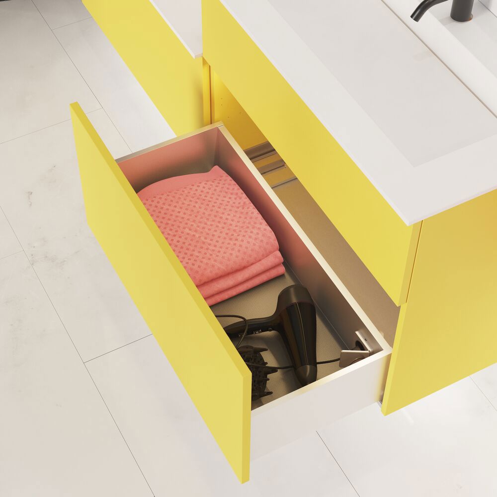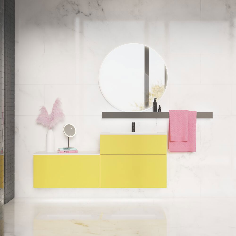 Das Angular Waschtisch bietet die perfekte Wahl für moderne Badezimmer mit seinem minimalistischen Look und scharfen, kantigen Design. Das Waschbecken wurde in enger Zusammenarbeit mit Cosentino entwickelt und ist in den beliebten Silestone Dekoren sowie dem nachhaltigen Dekton Dekor Trilium erhältlich. Trilium ist bekannt für sein raues, industrielles Aussehen und wird aus bis zu 80% recyceltem Material hergestellt, was es sowohl ästhetisch als auch umweltbewusst zu einer verantwortungsvollen Wahl macht. Der Waschtisch ist aus Plattenstücken gefertigt, die miteinander verklebt wurden, um ein elegantes und funktionales Becken zu schaffen. Der Boden des Beckens ist schräg geneigt, um das Wasser effizient zum schmalen, verdeckten Ablauf zu leiten, der sich über die Breite des Waschbeckens erstreckt und ein schlichtes sowie funktionales Design bietet. Das Angular Waschtisch ist die ideale Lösung für diejenigen, die ein sowohl schönes als auch nachhaltiges Element im Badezimmer wünschen, bei dem Design und Funktion Hand in Hand gehen.