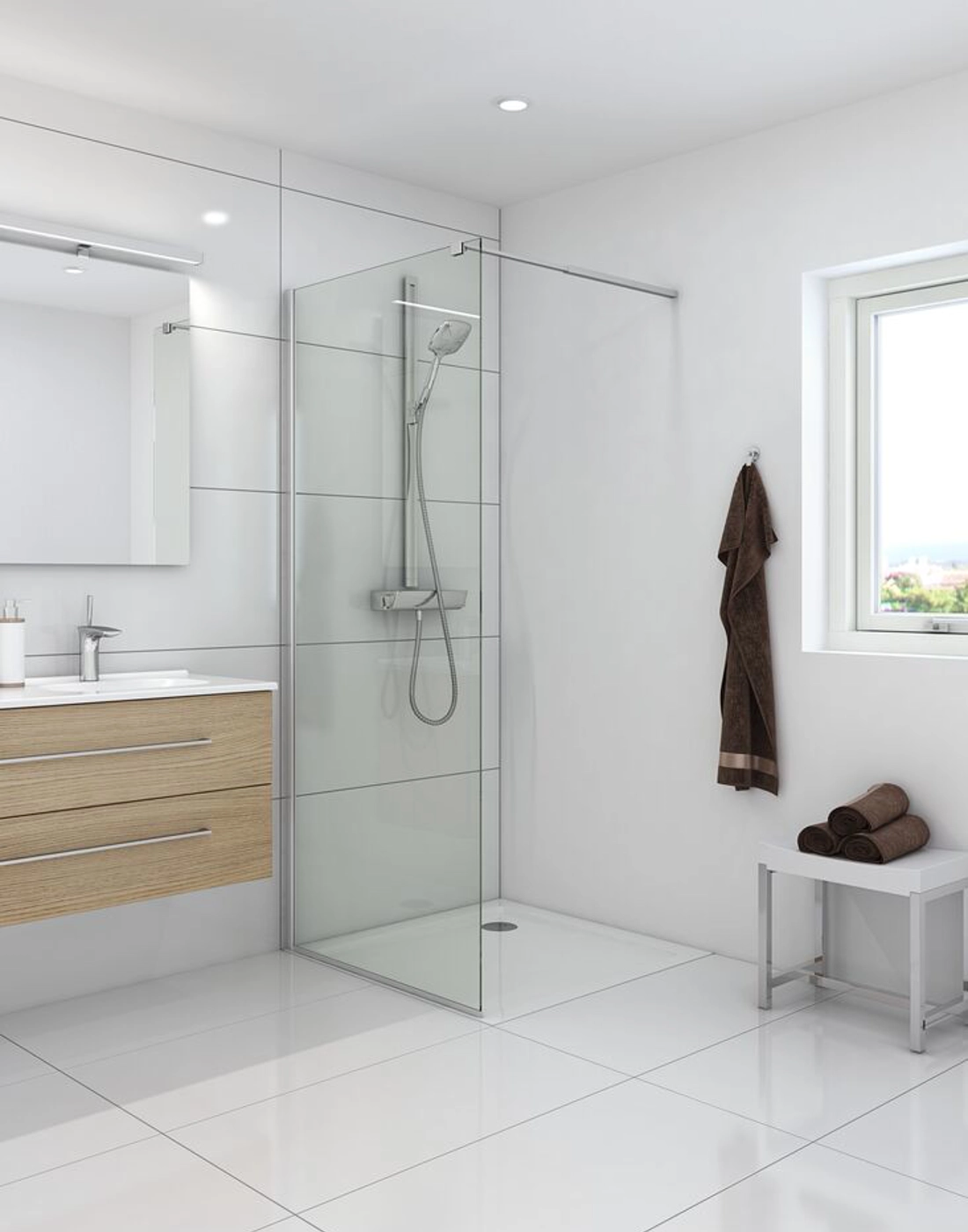 Der feste Duschwand wurde mit dem Ziel entwickelt, einen geräumigen und stilvollen Duschbereich zu schaffen, der vollständig an Ihren persönlichen Stil und Ihr Badezimmerdekor angepasst werden kann. Unsere festen Duschwände können mit anderen Duschabtrennungen aus dem Matzh Programm kombiniert werden und geben Ihnen die Möglichkeit, eine Lösung zu schaffen, die perfekt in Ihr Badezimmer passt. Vielleicht haben Sie viel Platz und können eine begehbare Dusche einrichten? Oder möchten Sie den festen Duschwand mit einer Drehtür kombinieren, um eine stabile und sichere Lösung zu erhalten? Wie auch immer Sie sich entscheiden, Sie können die Lösung finden, die am besten zu Ihnen passt. Das Glas an der festen Duschwand ist mit EasyCare behandelt, einer speziellen Beschichtung, die Wasser und Seifenreste abweist und so die Reinigung erheblich erleichtert. Das Glas ist außerdem gehärtet, und die starke Konstruktion und die soliden Materialien sorgen dafür, dass die Duschwand stabil und zuverlässig ist.
