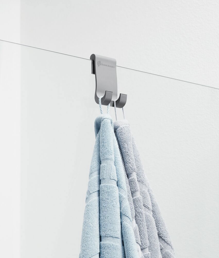 Dieser simple Handtuchhaken aus Silikon ist sowohl in Hell- als auch in Dunkelgrau erhältlich. Das Set besteht aus zwei simple und praktische Doppelhaken. Sie können diese Silikonhaken direkt am Rand Ihrer Duschabtrennung innen oder außen hängen. Diese Haken sind perfekt zum Aufhängen von Handtüchern, Bürsten, Schwämmen oder andere Artikel die Sie beim Duschen brauchen und somit immer direkt griffbereit haben.