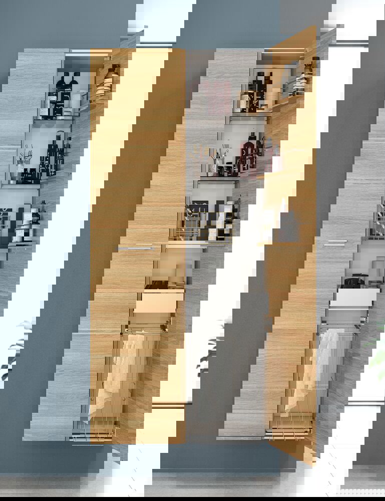 Mit dem Dansani Mido+ Hochschrank nutzen Sie jeden Zentimeter Platz in Ihrem Badezimmer. Mit einem Hochschrank können Sie all Ihre Badutensilien unterbringen. Wenn Sie also den Platz haben, empfehlen wir Ihnen unbedingt einen Hochschrank für Ihr Badezimmer. In diesem Hochschrank finden Sie 1 Holzeinlegeboden, 4 Glaseinlegeböden und 3 Einlegeböden in der Tür selbst. So haben Sie viel Platz und die Möglichkeit, Ihr Bad optimal zu gestalten. Erleben Sie mit dem Dansani Mido+ Hochschrank eine neue Dimension von Ordnung und Design in Ihrem Bad.
