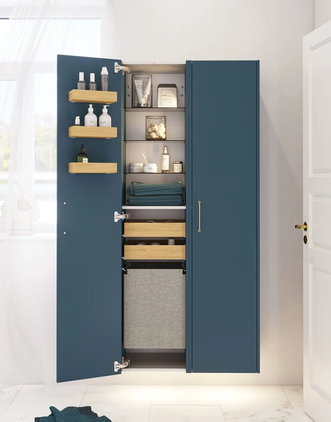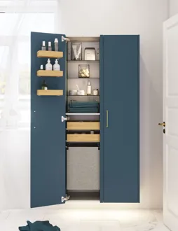 Upgraden Sie Ihr Badezimmer mit einem stilvollen Hochschrank mit glatter Front. Mit einer Höhe von 176 cm und einer Tiefe von 35 cm bietet dieser Schrank viel Stauraum für alles von Handtüchern und Toilettenartikeln bis hin zu zusätzlicher Bettwäsche. Der Schrank ist mit einem Holzregal und fünf Glasregalen ausgestattet, die es Ihnen ermöglichen, Ihre Badezimmerartikel so zu organisieren, dass sie leicht zugänglich sind. Die glatte Oberfläche verleiht einen minimalistischen und modernen Look, der jedes Badezimmer in einen einladenden Rückzugsort verwandeln kann. OBS: Für Produkte mit wahlfreie Farbe fällt eine Aufpreis (BI1) an. Einmalige Berechnung, unabhängig von der Anzahl der Elemente. Überlegen Sie Ihre Badmöbel mit praktischem Zubehör auszustatten, an denen Sie täglich Freude haben werden. Wie z.B. LED-Beleuchtung in den Schubladen, Innenbeleuchtung in den Schränken, eine eingebaute Steckdose und LED-Beleuchtung unter dem Schrank inkl. Bewegungssensor und Lichtsteuerung die Ihren nächtlichen Besuch im Bad führt. Das Zubehör wählen Sie direkt mit Ihren Möbeln aus.