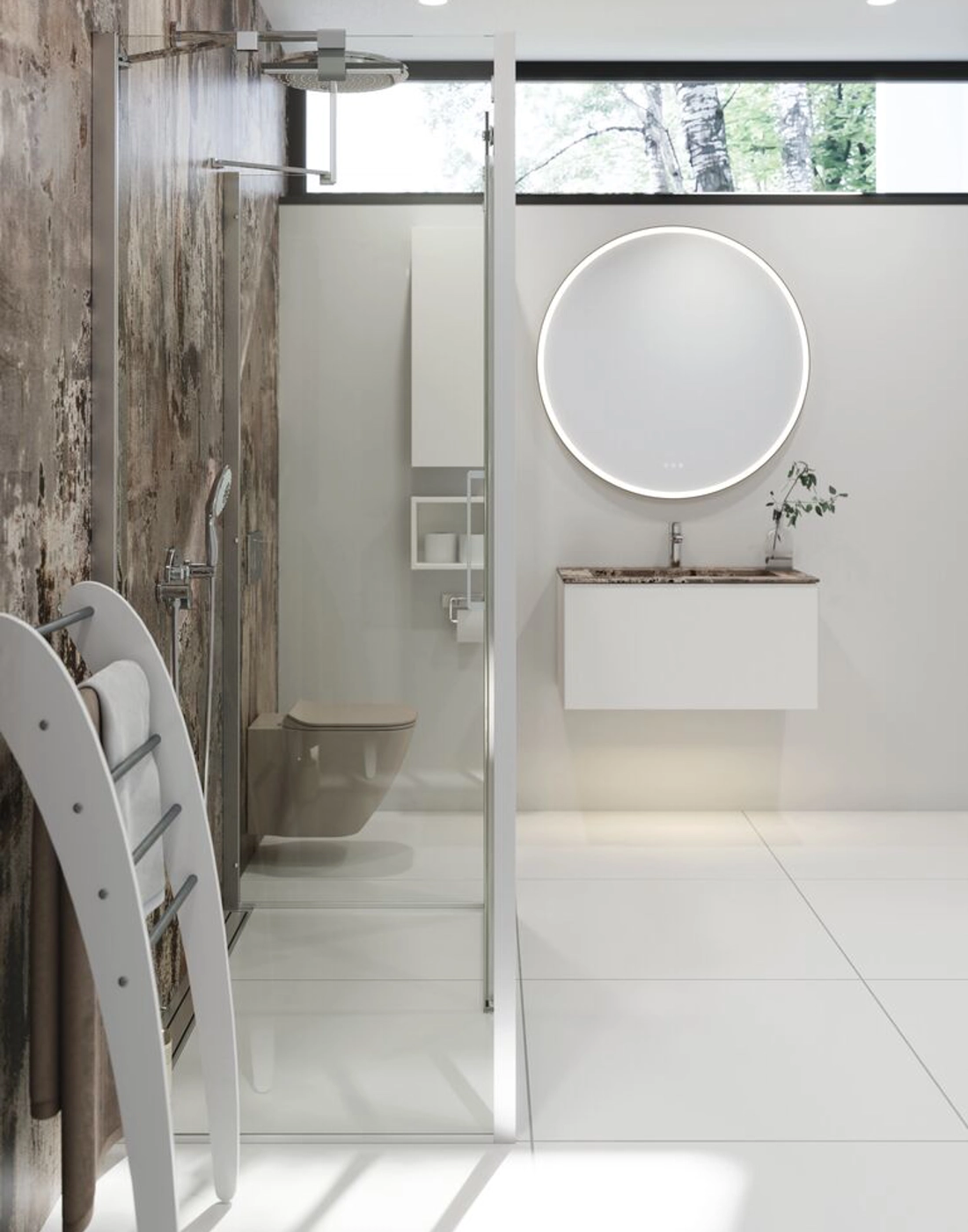 Der Hoop-Spiegel ist inspiriert von Schwebrahmen, bei denen der Rahmen frei um den Spiegel schwebt und eine dynamische sowie leichte Ästhetik schafft. Der geschwungene Innenrahmen leitet das Licht von der Rückseite nach vorne und sorgt für weiches, blendfreies Licht, das gleichmäßig im Raum verteilt wird. Mit der integrierten Lichtsteuerung können Sie die Helligkeit nach Bedarf anpassen, sodass Sie die perfekte Atmosphäre schaffen können – von intensivem Licht für Make-up bis hin zu sanftem Licht zum Entspannen. Der Hoop-Spiegel wird standardmäßig mit einem schwarzen Rahmen geliefert, aber Sie können die Außenseite des Rahmens in einer Sonderfarbe lackieren lassen, um ihn an Ihre Einrichtung anzupassen. Sie können ein vormontiertes Wärmefeld für den Spiegel kaufen, um zu verhindern, dass der Spiegel beim Duschen beschlägt.  OBS: Für Produkte mit wahlfreie Farbe fällt eine Aufpreis (BI1) an. Einmalige Berechnung, unabhängig von der Anzahl der Elemente.