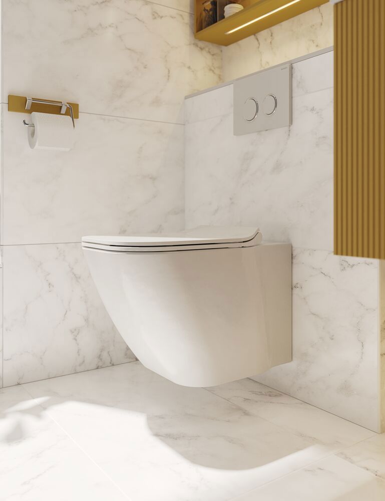 Die Toilette Bellsani von Dansani Calidris ist ein klassisches handgefertigtes Meisterwerk aus Sanitärporzellan. Diese Toilette verkörpert die perfekte Kombination aus traditioneller Handwerkskunst und modernem Design. Mit einer breiten Palette von 7 verschiedenen Farben können Sie die Bellsani Toilette individuell gestalten, so dass sie wunderbar mit Ihrem persönlichen Stil harmoniert. Die Farbauswahl ermöglicht es Ihnen auch, ein stimmiges und elegantes Dekor zu schaffen, indem Sie es mit einem passenden Waschtisch kombinieren. Praktischerweise ist die Bellsani Toilette mit einer Soft-Close-Funktion ausgestattet, die für ein leises und sanftes Schließen des Toilettensitzes sorgt. Darüber hinaus macht das Rimless Spülsystem die Reinigung einfacher und effizienter und macht diese Toilette sowohl stilvoll als auch benutzerfreundlich. Unsere einzigartigen, handgefertigten, farbigen Toiletten aus Porzellan können geringfügige Oberflächenfehler aufweisen, da jede einzelne Toilette individuell gefärbt ist.