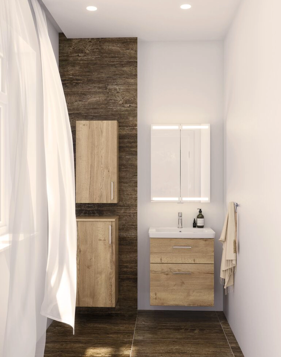 Mit den Hängeschränken schaffen Sie Platz und Ordnung in Ihrem Badezimmer. Erhältlich mit 2 Glasböden, ist dieser elegante Schrank sowohl stilvoll als auch funktional. Verwenden Sie den Schrank als Stauraum in Ihrem Badezimmer, um Ihre Cremes, Deodorants usw. geordnet aufzubewahren. Der Schrank ist in verschiedenen Farben erhältlich, die zum Rest Ihres Badezimmers passen. OBS: Für Produkte mit wahlfreie Farbe fällt eine Aufpreis (BI1) an. Einmalige Berechnung, unabhängig von der Anzahl der Elemente. Überlegen Sie Ihre Badmöbel mit praktischem Zubehör auszustatten, an denen Sie täglich Freude haben werden. Wie z.B. LED-Beleuchtung in den Schubladen, Innenbeleuchtung in den Schränken, eine eingebaute Steckdose und LED-Beleuchtung unter dem Schrank inkl. Bewegungssensor und Lichtsteuerung die Ihren nächtlichen Besuch im Bad führt. Das Zubehör wählen Sie direkt mit Ihren Möbeln aus.