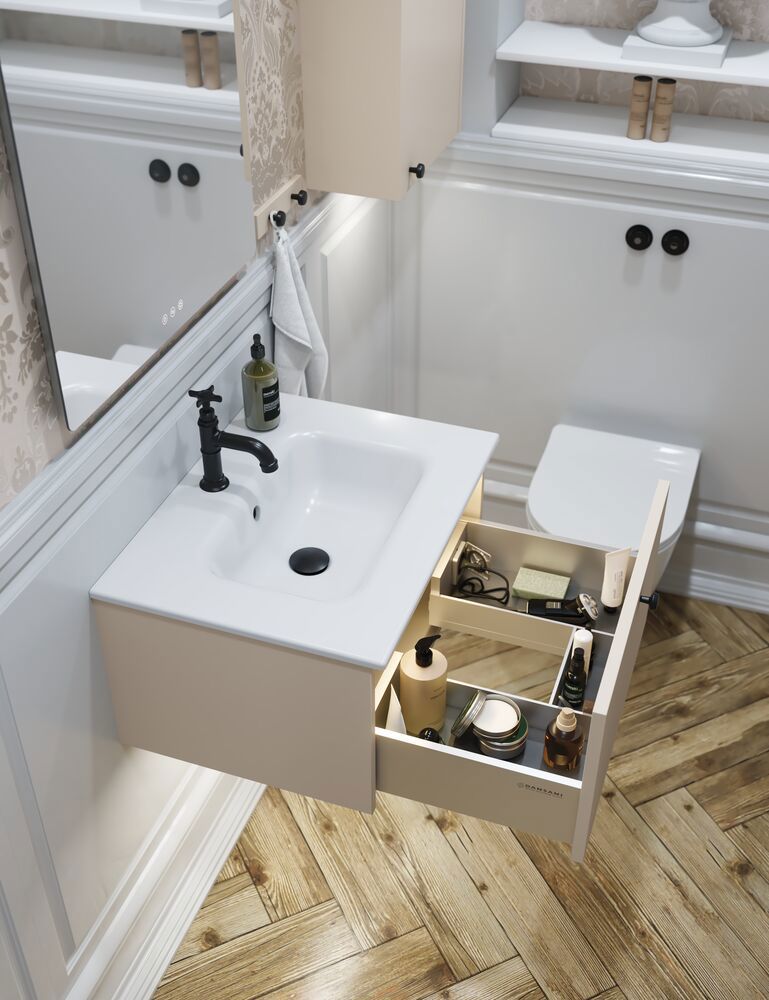 Werten Sie Ihr Badezimmer mit einem stilvollen Oberschrank mit glatter Front auf. Mit einer Breite von 40 cm und einer Tiefe von 19 cm bietet dieser Schrank effiziente Aufbewahrung für Ihre Badezimmerartikel. Die beiden Glaseinlegeböden ermöglichen es Ihnen, alles von Cremes bis hin zu kleinen Dekorationen zu organisieren und zu präsentieren, sodass Sie Ihre Essentials immer griffbereit haben. Dieser Oberschrank lässt sich leicht mit einem offenen Regal kombinieren, um eine elegante Aufbewahrungslösung und eine persönliche Atmosphäre in Ihrem Badezimmer zu schaffen. OBS: Für Produkte mit wahlfreie Farbe fällt eine Aufpreis (BI1) an. Einmalige Berechnung, unabhängig von der Anzahl der Elemente. Überlegen Sie Ihre Badmöbel mit praktischem Zubehör auszustatten, an denen Sie täglich Freude haben werden. Wie z.B. LED-Beleuchtung in den Schubladen, Innenbeleuchtung in den Schränken, eine eingebaute Steckdose und LED-Beleuchtung unter dem Schrank inkl. Bewegungssensor und Lichtsteuerung die Ihren nächtlichen Besuch im Bad führt. Das Zubehör wählen Sie direkt mit Ihren Möbeln aus.