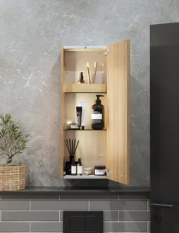 Mit den Hängeschränken schaffen Sie Platz und Ordnung in Ihrem Badezimmer. Erhältlich mit 2 Glasböden, ist dieser elegante Schrank sowohl stilvoll als auch funktional. Verwenden Sie den Schrank als Stauraum in Ihrem Badezimmer, um Ihre Cremes, Deodorants usw. geordnet aufzubewahren. Der Schrank ist in verschiedenen Farben erhältlich, die zum Rest Ihres Badezimmers passen. OBS: Für Produkte mit wahlfreie Farbe fällt eine Aufpreis (BI1) an. Einmalige Berechnung, unabhängig von der Anzahl der Elemente. Überlegen Sie Ihre Badmöbel mit praktischem Zubehör auszustatten, an denen Sie täglich Freude haben werden. Wie z.B. LED-Beleuchtung in den Schubladen, Innenbeleuchtung in den Schränken, eine eingebaute Steckdose und LED-Beleuchtung unter dem Schrank inkl. Bewegungssensor und Lichtsteuerung die Ihren nächtlichen Besuch im Bad führt. Das Zubehör wählen Sie direkt mit Ihren Möbeln aus.