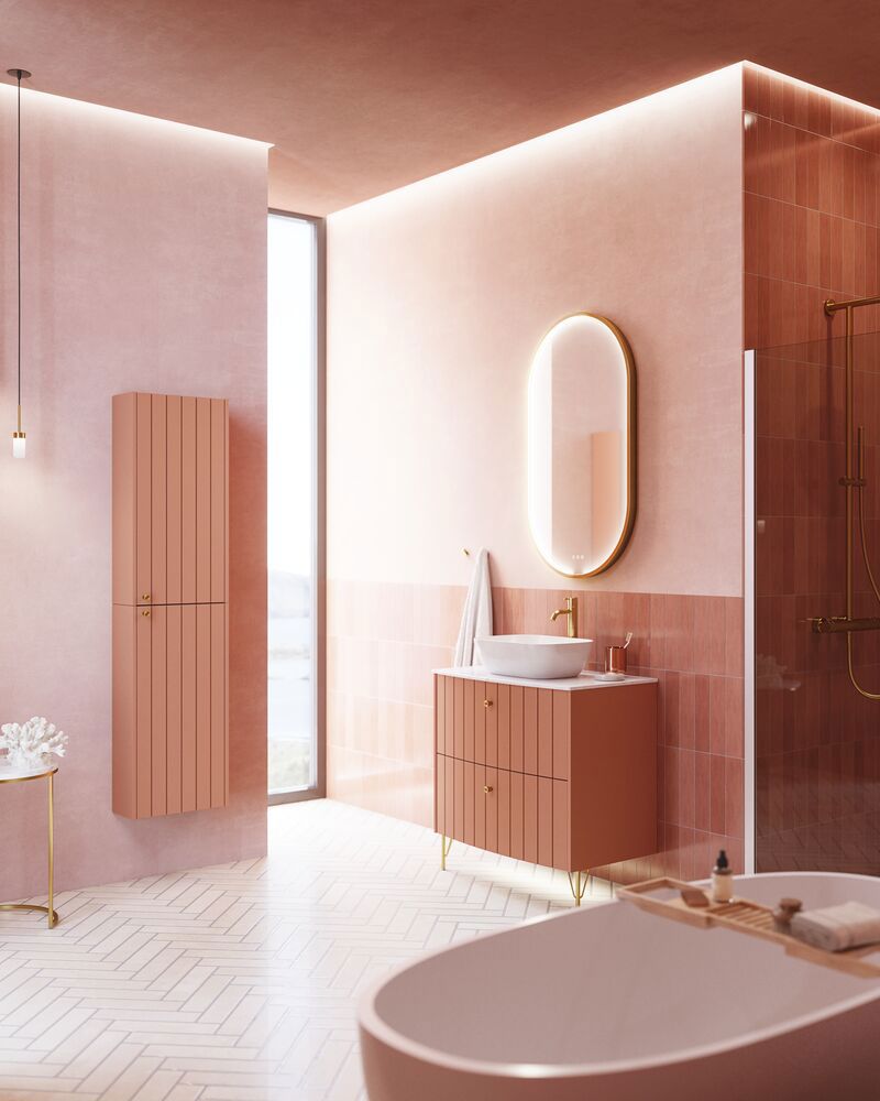Holen Sie sich zusätzlichen Stauraum in Ihr Badezimmer mit diesem charmanten Oberschrank. Die schöne geriffelte Front verleiht einen besonderen Charme und passt perfekt in eine klassische und zeitlose Einrichtung. Der Oberschrank hat eine Tiefe von 19 cm, was ihn ideal macht, um den Raum effizient zu nutzen, zum Beispiel auf dem leeren Platz über der Toilette. Mit zwei Glaseinlegeböden ermöglicht der Schrank eine elegante Organisation Ihrer Badezimmerartikel. Egal, ob Sie Ihre Lieblingsprodukte präsentieren oder die notwendigen Toilettenartikel im Blick behalten möchten, dieser Oberschrank bietet sowohl Funktionalität als auch Stil. Er ist eine ideale Lösung, um Ordnung zu schaffen und gleichzeitig ein ästhetisches Element in Ihr Badezimmer zu bringen. OBS: Für Produkte mit wahlfreie Farbe fällt eine Aufpreis (BI1) an. Einmalige Berechnung, unabhängig von der Anzahl der Elemente. Überlegen Sie Ihre Badmöbel mit praktischem Zubehör auszustatten, an denen Sie täglich Freude haben werden. Wie z.B. LED-Beleuchtung in den Schubladen, Innenbeleuchtung in den Schränken, eine eingebaute Steckdose und LED-Beleuchtung unter dem Schrank inkl. Bewegungssensor und Lichtsteuerung die Ihren nächtlichen Besuch im Bad führt. Das Zubehör wählen Sie direkt mit Ihren Möbeln aus.