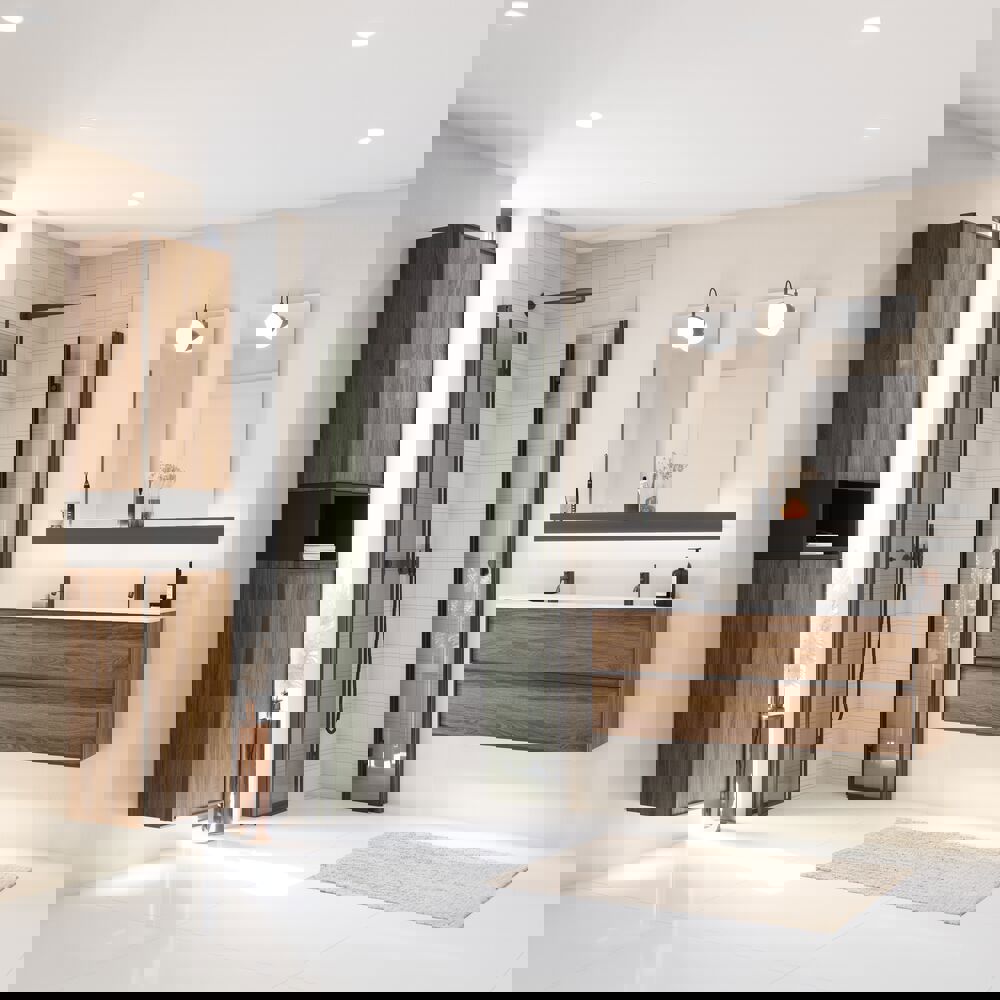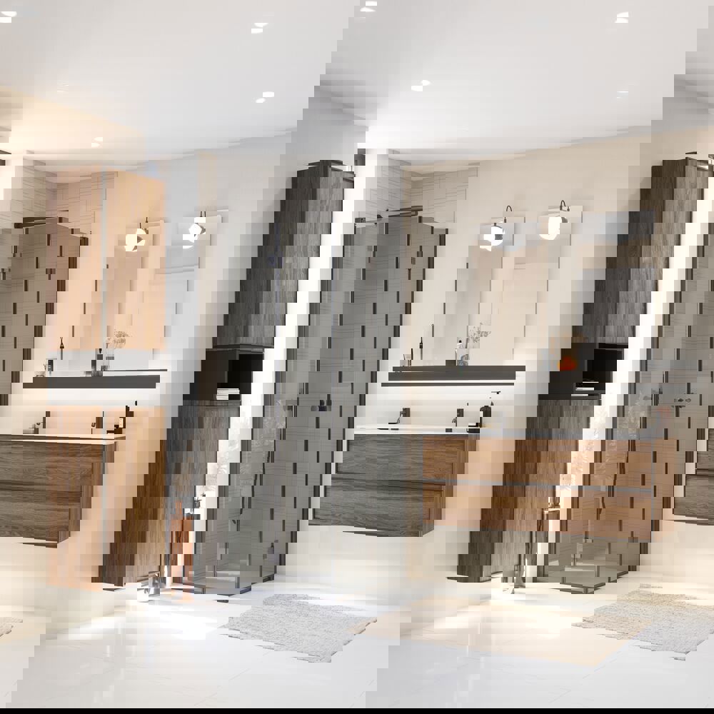 Das offene Fach hat eine Tiefe von 35 cm und passt somit perfekt zu den Unterschränken von Luna. Das Regal kann direkt an der Wand montiert und allein oder in Kombination mit einem oder zwei Hängeschränken verwendet werden, je nachdem, welchen Look und welche Funktion Sie wünschen. Das offene Design bietet Ihnen sowohl praktischen Stauraum als auch die Möglichkeit, Ihre Lieblingsstücke zu präsentieren - von Handtüchern und Badutensilien bis hin zu dekorativen Details, die dem Raum Persönlichkeit verleihen. Die Kombination aus Funktionalität und Ästhetik macht das Regal zu einer flexiblen Wahl, die sich an Ihre Bedürfnisse anpassen lässt. Mit dem offenen Regal von Dansani erhalten Sie ein modernes und stilvolles Element, das Ihrem Badezimmer einen exklusiven Look verleiht und den Alltag erleichtert. OBS: Für Produkte mit wahlfreie Farbe fällt eine Aufpreis (BI1) an. Einmalige Berechnung, unabhängig von der Anzahl der Elemente.