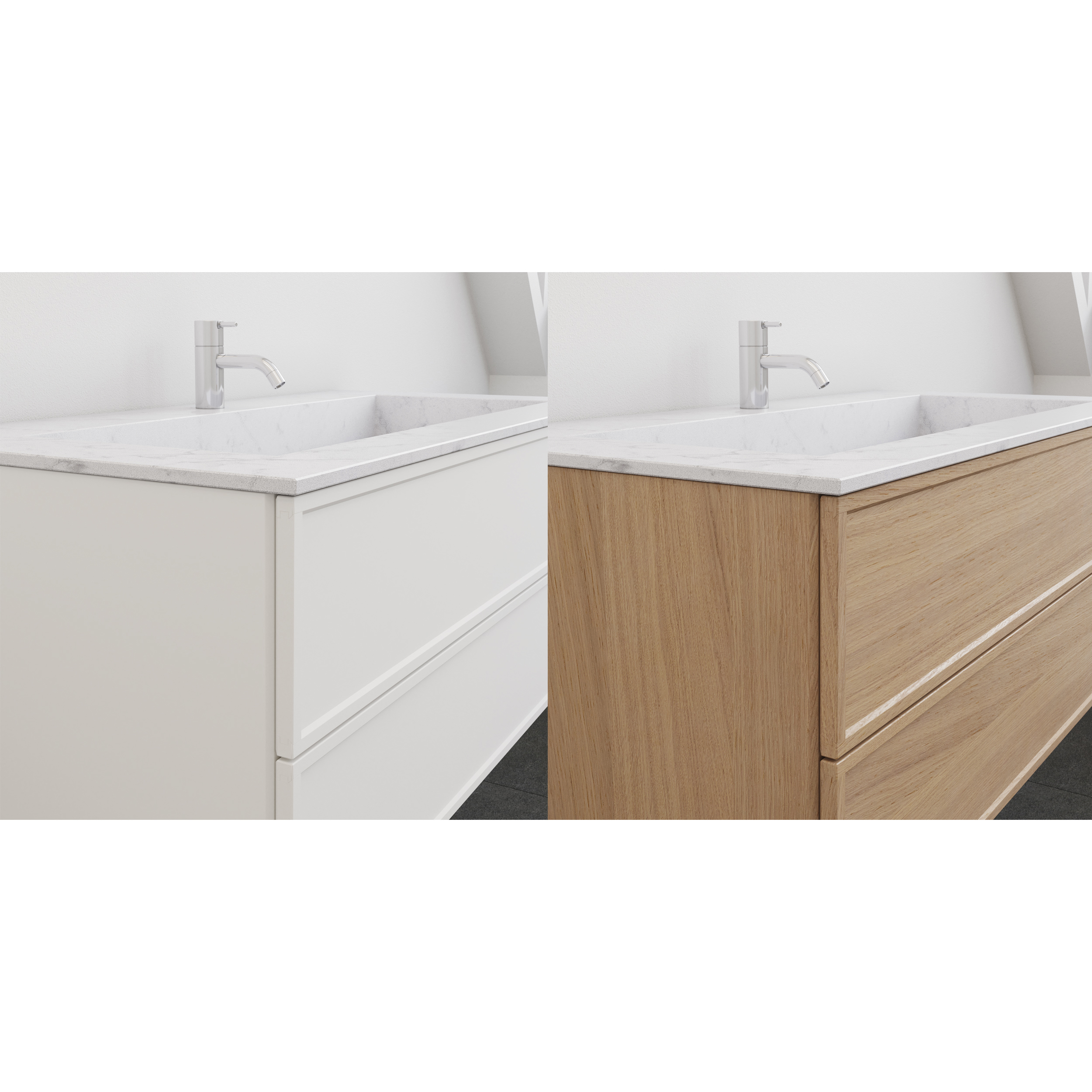 Rahmenfronten sind einer der größten Trends in der Innenarchitektur - und mit Calidris können Sie diesen eleganten Stil in Ihr Badezimmer bringen. Die schöne Rahmung schafft einen klassischen und doch modernen Look, der Ihren Möbeln Charakter und Persönlichkeit verleiht. Die Front ist in verschiedenen Farben und Ausführungen erhältlich, so dass Sie sie an Ihren Stil anpassen können. Ob Sie von einem hellen, nordischen Badezimmer träumen oder eine warme und exklusive Atmosphäre wünschen, die Rahmenfront kann den Ton angeben. Mit Calidris Rahmenfronten erhalten Sie einen Look, der sowohl den aktuellen Trends folgt als auch zeitlos ist und an dem Sie sich viele Jahre lang erfreuen können.  Hinweis: Diese Front funktioniert als Option für Ihre Möbel. Wählen Sie also zuerst die Größe und Artikelnummer Ihrer Badmöbel aus und fügen Sie dann die optionale Front zu Ihrer Bestellung hinzu.