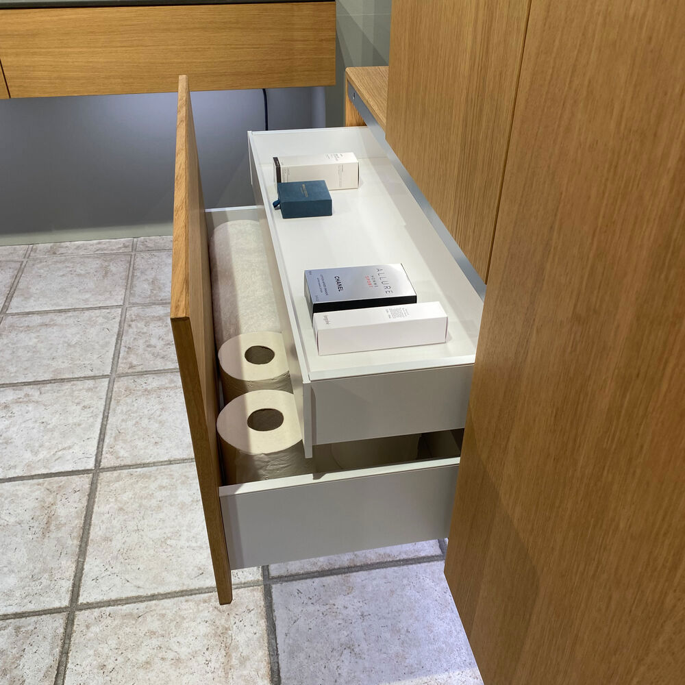 Dansani Calidris Schränke mit 1 Schublade sind die ideale Lösung für eine intelligente und stilvolle Aufbewahrung im Badezimmer. Ohne Platz für Abflüsse sind diese Schränke für diejenigen, die sich für eine asymmetrische Lösung mit einem maßgeschneiderten Waschbecken entscheiden, oder für diejenigen, die zusätzlichen Stauraum an anderer Stelle im Bad wünschen. Die geräumige Schublade sorgt für Ordnung im Bad und bietet viel Platz für Cremes, Shampoo, Haartrockner und vieles mehr. Der Dansani Calidris Schrank gibt Ihnen die Möglichkeit, Ihr Bad auf eine kohärente und schöne Art zu organisieren. OBS: Für Produkte mit Eiche und wahlfreie Farbe fällt eine Aufpreis (BI1) an. Einmalige Berechnung, unabhängig von der Anzahl der Elemente. Überlegen Sie Ihre Badmöbel mit praktischem Zubehör auszustatten, an denen Sie täglich Freude haben werden. Wie z.B. LED-Beleuchtung in den Schubladen, Innenbeleuchtung in den Schränken, eine eingebaute Steckdose und LED-Beleuchtung unter dem Schrank inkl. Bewegungssensor und Lichtsteuerung die Ihren nächtlichen Besuch im Bad führt. Das Zubehör wählen Sie direkt mit Ihren Möbeln aus.
