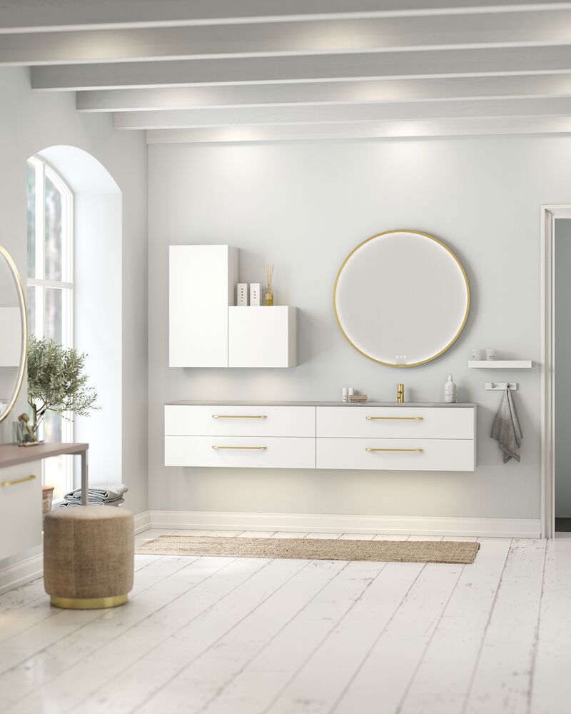Der Dansani Calidris Schrank mit Tür bietet einfache und stilvolle Aufbewahrungslösungen für Ihr Badezimmer. Mit einem sauberen und zeitlosen Design, bietet die Tür Zugang zu einem geräumigen Stauraum für Toilettenartikel, Handtücher und andere Badutensilien. Die Ästhetik und Funktionalität des Schranks machen ihn zu einer idealen Ergänzung für jedes Badezimmerinterieur. Kombinieren Sie den Schrank mit anderen Dansani Calidris Schränken für ein einzigartiges Badezimmer, das zu Ihnen passt. OBS: Für Produkte mit Eiche und wahlfreie Farbe fällt eine Aufpreis (BI1) an. Einmalige Berechnung, unabhängig von der Anzahl der Elemente. Überlegen Sie Ihre Badmöbel mit praktischem Zubehör auszustatten, an denen Sie täglich Freude haben werden. Wie z.B. LED-Beleuchtung in den Schubladen, Innenbeleuchtung in den Schränken, eine eingebaute Steckdose und LED-Beleuchtung unter dem Schrank inkl. Bewegungssensor und Lichtsteuerung die Ihren nächtlichen Besuch im Bad führt. Das Zubehör wählen Sie direkt mit Ihren Möbeln aus.