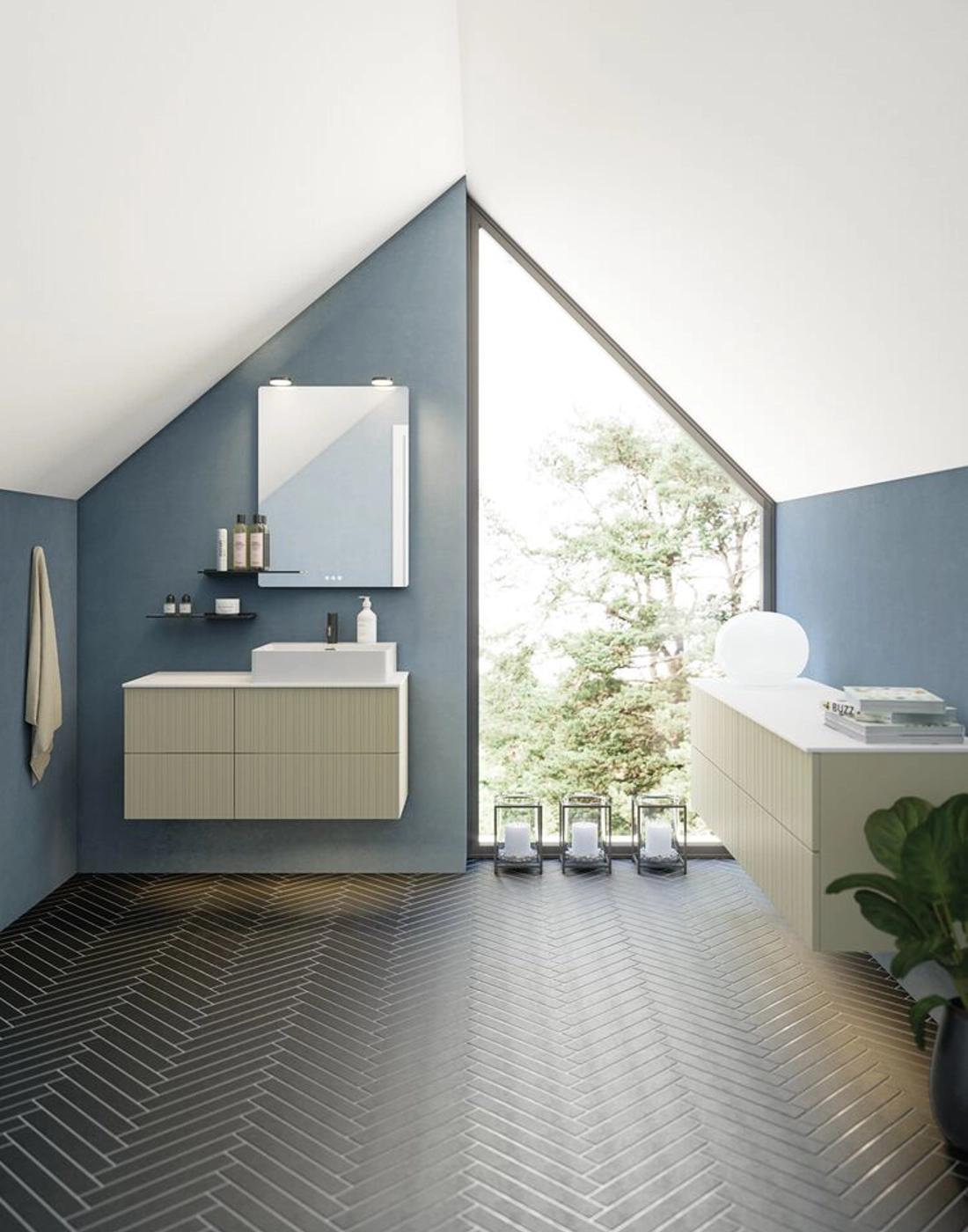 Erneuern Sie Ihr Badezimmer mit Unterschränken ohne Abflussausschnitt, die 2 funktionale Schubladen bieten. Diese Schränke sind 48 cm hoch und verfügen über eine elegante geriffelte Front, die ein einzigartiges und stilvolles Erscheinungsbild verleiht. Perfekt für moderne Badezimmer, lassen sie sich leicht mit einem Waschtischunterschrank und einer Arbeitsplatte mit einem Aufsatzwaschbecken kombinieren. Die geriffelte Front fügt Ihrem Badezimmer Charakter und Tiefe hinzu, während Sie gleichzeitig reichlich Stauraum für Ihre Badezimmerartikel erhalten. Mit diesen Unterschränken erhalten Sie sowohl Funktionalität als auch Ästhetik in einer Lösung. OBS: Für Produkte mit wahlfreie Farbe fällt eine Aufpreis (BI1) an. Einmalige Berechnung, unabhängig von der Anzahl der Elemente. Überlegen Sie Ihre Badmöbel mit praktischem Zubehör auszustatten, an denen Sie täglich Freude haben werden. Wie z.B. LED-Beleuchtung in den Schubladen, Innenbeleuchtung in den Schränken, eine eingebaute Steckdose und LED-Beleuchtung unter dem Schrank inkl. Bewegungssensor und Lichtsteuerung die Ihren nächtlichen Besuch im Bad führt. Das Zubehör wählen Sie direkt mit Ihren Möbeln aus.