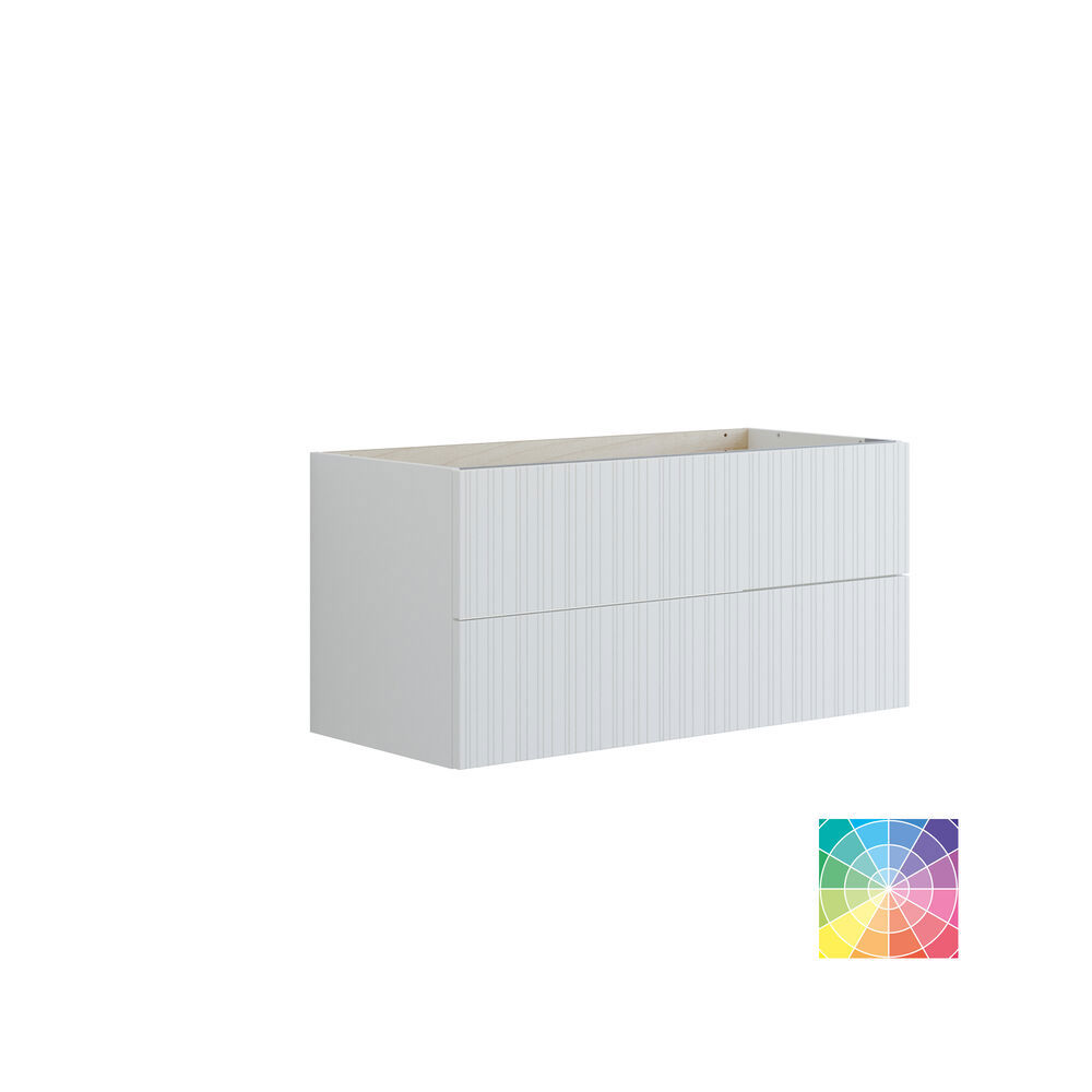 Erneuern Sie Ihr Badezimmer mit Unterschränken ohne Abflussausschnitt, die 2 funktionale Schubladen bieten. Diese Schränke sind 48 cm hoch und verfügen über eine elegante geriffelte Front, die ein einzigartiges und stilvolles Erscheinungsbild verleiht. Perfekt für moderne Badezimmer, lassen sie sich leicht mit einem Waschtischunterschrank und einer Arbeitsplatte mit einem Aufsatzwaschbecken kombinieren. Die geriffelte Front fügt Ihrem Badezimmer Charakter und Tiefe hinzu, während Sie gleichzeitig reichlich Stauraum für Ihre Badezimmerartikel erhalten. Mit diesen Unterschränken erhalten Sie sowohl Funktionalität als auch Ästhetik in einer Lösung. OBS: Für Produkte mit wahlfreie Farbe fällt eine Aufpreis (BI1) an. Einmalige Berechnung, unabhängig von der Anzahl der Elemente. Überlegen Sie Ihre Badmöbel mit praktischem Zubehör auszustatten, an denen Sie täglich Freude haben werden. Wie z.B. LED-Beleuchtung in den Schubladen, Innenbeleuchtung in den Schränken, eine eingebaute Steckdose und LED-Beleuchtung unter dem Schrank inkl. Bewegungssensor und Lichtsteuerung die Ihren nächtlichen Besuch im Bad führt. Das Zubehör wählen Sie direkt mit Ihren Möbeln aus.