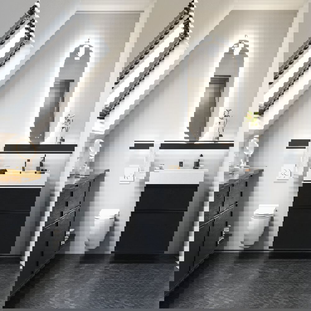 Die Unterschränke mit 2 Schubladen haben eine Höhe von 64 cm und eine hohe Bodenschublade, die großzügigen Stauraum für all Ihre Badezimmerartikel bietet. Der stilvolle schwarze Rahmen verleiht den Unterschränken eine moderne und raffinierte Note. Sie können sie allein oder in Kombination mit einem Waschtischunterschrank und einer Arbeitsplatte mit einem freistehenden Waschbecken für einen interessanten asymmetrischen Effekt verwenden. Wählen Sie aus verschiedenen Farben, um den Schrank zu finden, der am besten zu Ihrem Badezimmer passt. Die Unterschränke mit 2 Schubladen kombinieren sowohl Ästhetik als auch Funktionalität, was Ihr Badezimmer organisierter und stilvoller macht. OBS: Für Produkte mit wahlfreie Farbe fällt eine Aufpreis (BI1) an. Einmalige Berechnung, unabhängig von der Anzahl der Elemente. Überlegen Sie Ihre Badmöbel mit praktischem Zubehör auszustatten, an denen Sie täglich Freude haben werden. Wie z.B. LED-Beleuchtung in den Schubladen, Innenbeleuchtung in den Schränken, eine eingebaute Steckdose und LED-Beleuchtung unter dem Schrank inkl. Bewegungssensor und Lichtsteuerung die Ihren nächtlichen Besuch im Bad führt. Das Zubehör wählen Sie direkt mit Ihren Möbeln aus.