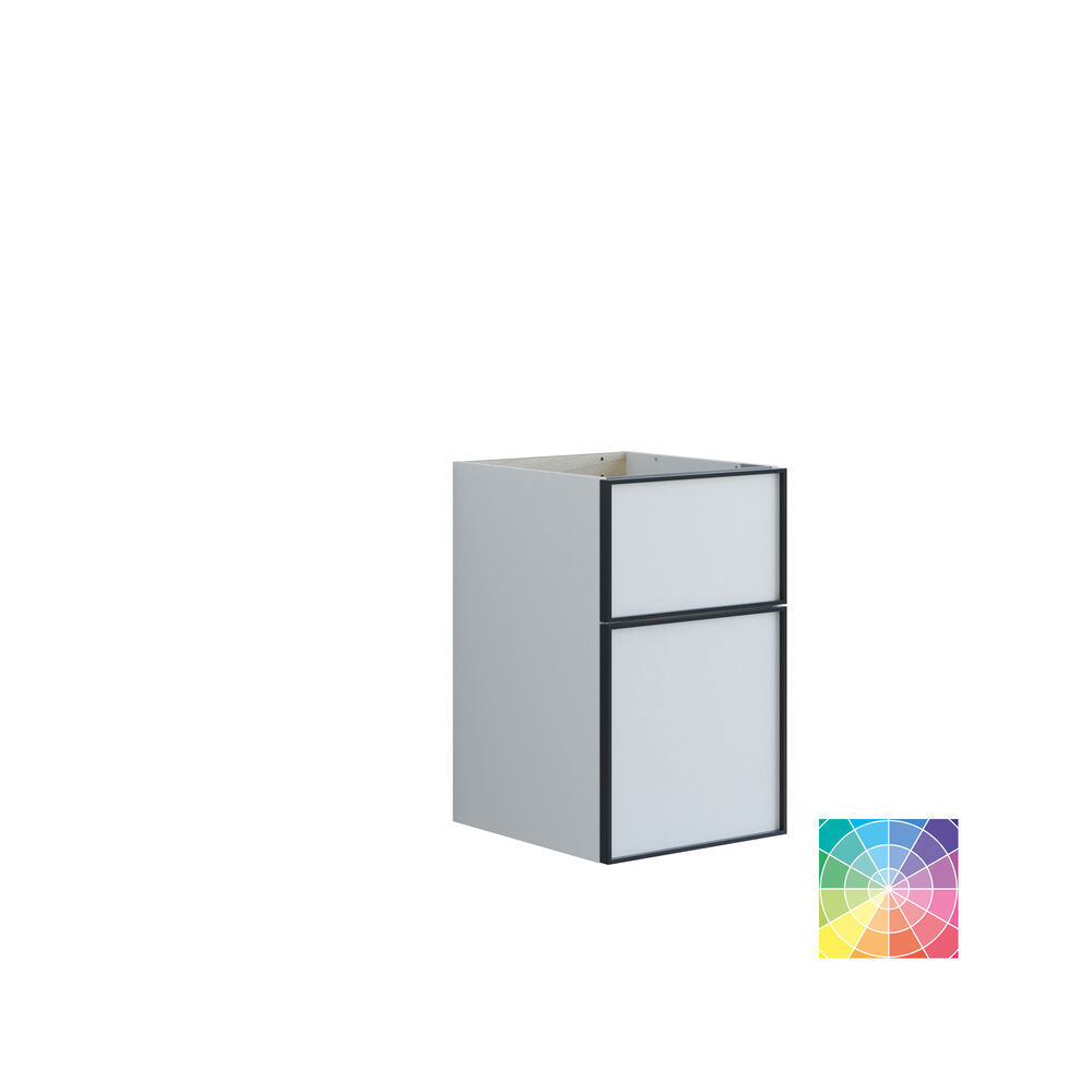 Die Unterschränke mit 2 Schubladen haben eine Höhe von 64 cm und eine hohe Bodenschublade, die großzügigen Stauraum für all Ihre Badezimmerartikel bietet. Der stilvolle schwarze Rahmen verleiht den Unterschränken eine moderne und raffinierte Note. Sie können sie allein oder in Kombination mit einem Waschtischunterschrank und einer Arbeitsplatte mit einem freistehenden Waschbecken für einen interessanten asymmetrischen Effekt verwenden. Wählen Sie aus verschiedenen Farben, um den Schrank zu finden, der am besten zu Ihrem Badezimmer passt. Die Unterschränke mit 2 Schubladen kombinieren sowohl Ästhetik als auch Funktionalität, was Ihr Badezimmer organisierter und stilvoller macht. OBS: Für Produkte mit wahlfreie Farbe fällt eine Aufpreis (BI1) an. Einmalige Berechnung, unabhängig von der Anzahl der Elemente. Überlegen Sie Ihre Badmöbel mit praktischem Zubehör auszustatten, an denen Sie täglich Freude haben werden. Wie z.B. LED-Beleuchtung in den Schubladen, Innenbeleuchtung in den Schränken, eine eingebaute Steckdose und LED-Beleuchtung unter dem Schrank inkl. Bewegungssensor und Lichtsteuerung die Ihren nächtlichen Besuch im Bad führt. Das Zubehör wählen Sie direkt mit Ihren Möbeln aus.