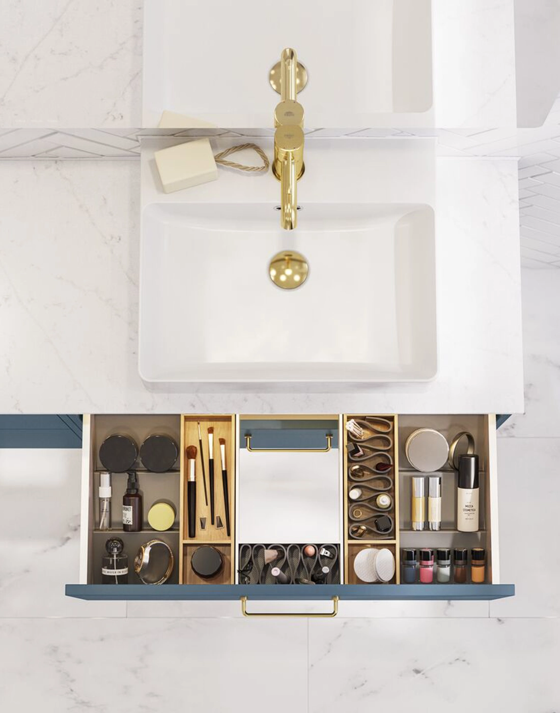 Verwandeln Sie Ihr Badezimmer mit diesem stilvollen Unterschrank mit glatter Front und zwei geräumigen Schubladen. Dieser Schrank bietet Ihnen optimalen Stauraum für all Ihre Badezimmerartikel, sodass Sie ganz einfach Ordnung halten können. Das minimalistische Design macht ihn zur perfekten Wahl für moderne Badezimmer. Egal, ob Sie eine Arbeitsplatte darauf platzieren oder ihn mit einem Waschbecken kombinieren, dieser Schrank fügt Ihrem Badezimmer ein elegantes und funktionales Element hinzu. Wählen Sie aus mehreren Farben, um Ihren eigenen Stil zu kreieren. OBS: Für Produkte mit wahlfreie Farbe fällt eine Aufpreis (BI1) an. Einmalige Berechnung, unabhängig von der Anzahl der Elemente. Überlegen Sie Ihre Badmöbel mit praktischem Zubehör auszustatten, an denen Sie täglich Freude haben werden. Wie z.B. LED-Beleuchtung in den Schubladen, Innenbeleuchtung in den Schränken, eine eingebaute Steckdose und LED-Beleuchtung unter dem Schrank inkl. Bewegungssensor und Lichtsteuerung die Ihren nächtlichen Besuch im Bad führt. Das Zubehör wählen Sie direkt mit Ihren Möbeln aus.