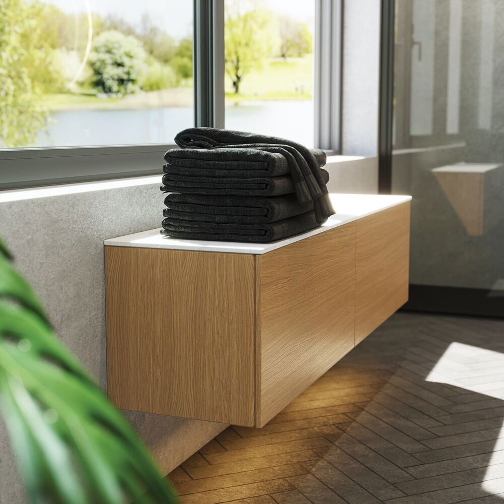 Mit der Schubladenbank aus der Serie Calidris können Sie Ihr Bad noch individueller gestalten. Mit einer Höhe von 20 cm und einer geräumigen Schublade erhalten Sie sowohl praktischen Stauraum als auch ein zusätzliches Designelement, das Sie an Ihren Stil anpassen können. Die Bank muss mit Stützfüßen ausgestattet werden, die separat erhältlich sind, und Sie können auch ein schönes Kissen für zusätzlichen Komfort und Gemütlichkeit wählen. Stellen Sie die Bank allein auf, als Erweiterung Ihrer Möbel oder als Teil einer kreativen Inneneinrichtung - die Möglichkeiten sind endlos und das Ergebnis ist immer ein einzigartiger Calidris-Look. Mit der Schubladenbank können Sie eine einladende Sitzecke, eine praktische Aufbewahrungslösung oder einfach ein elegantes Designelement schaffen, das Ihr Bad vervollständigt. OBS: Für Produkte mit Eiche und wahlfreie Farbe fällt eine Aufpreis (BI1) an. Einmalige Berechnung, unabhängig von der Anzahl der Elemente.