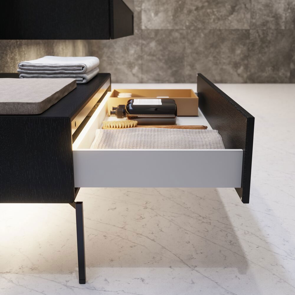 Mit der Schubladenbank aus der Serie Calidris können Sie Ihr Bad noch individueller gestalten. Mit einer Höhe von 20 cm und einer geräumigen Schublade erhalten Sie sowohl praktischen Stauraum als auch ein zusätzliches Designelement, das Sie an Ihren Stil anpassen können. Die Bank muss mit Stützfüßen ausgestattet werden, die separat erhältlich sind, und Sie können auch ein schönes Kissen für zusätzlichen Komfort und Gemütlichkeit wählen. Stellen Sie die Bank allein auf, als Erweiterung Ihrer Möbel oder als Teil einer kreativen Inneneinrichtung - die Möglichkeiten sind endlos und das Ergebnis ist immer ein einzigartiger Calidris-Look. Mit der Schubladenbank können Sie eine einladende Sitzecke, eine praktische Aufbewahrungslösung oder einfach ein elegantes Designelement schaffen, das Ihr Bad vervollständigt. OBS: Für Produkte mit Eiche und wahlfreie Farbe fällt eine Aufpreis (BI1) an. Einmalige Berechnung, unabhängig von der Anzahl der Elemente.