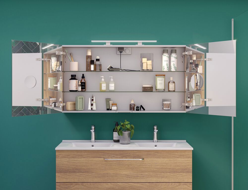 Der Select Spiegelschrank ist viel mehr als nur ein Spiegelschrank - er ist Ihr persönliches Badezimmer-Upgrade. Wählen Sie Ihre eigenen Lampen und schaffen Sie die perfekte Beleuchtung, um Ihren Tag mit Stil zu beginnen. Mit dem Spiegelschrank erhalten Sie viel Stauraum und eine Steckdose im Inneren des Spiegelschranks für Ihre Elektrogeräte. Erleben Sie Komfort und Eleganz in Einem mit dem Select Spiegelschrank - Ihr täglicher Begleiter für einen strahlenden Morgen.