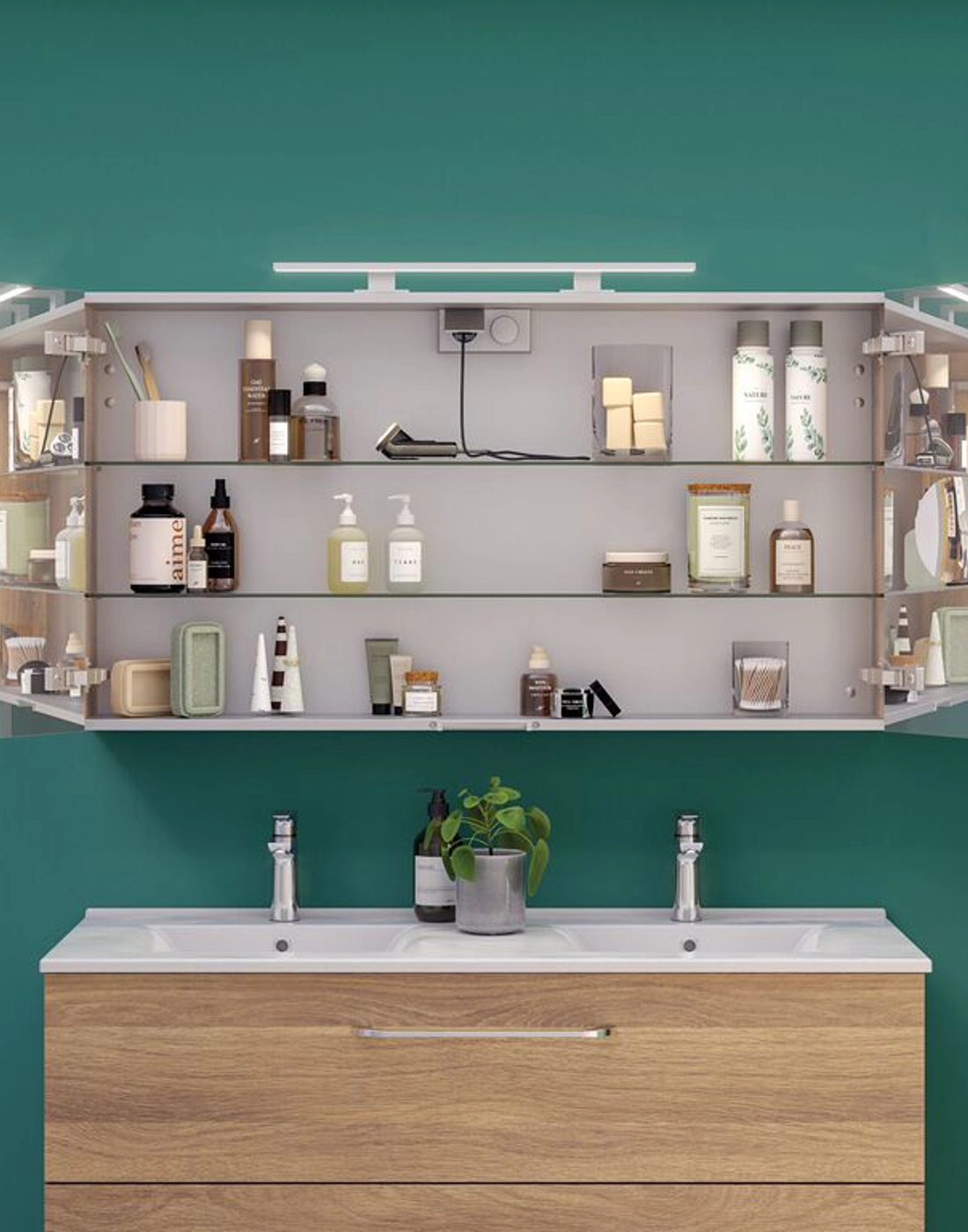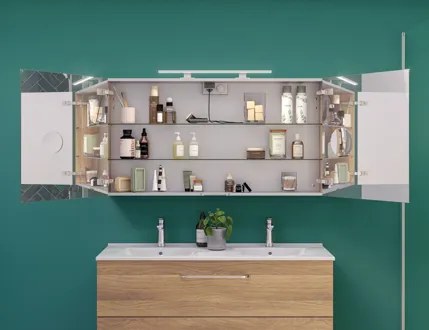 Der Select Spiegelschrank ist viel mehr als nur ein Spiegelschrank - er ist Ihr persönliches Badezimmer-Upgrade. Wählen Sie Ihre eigenen Lampen und schaffen Sie die perfekte Beleuchtung, um Ihren Tag mit Stil zu beginnen. Mit dem Spiegelschrank erhalten Sie viel Stauraum und eine Steckdose im Inneren des Spiegelschranks für Ihre Elektrogeräte. Erleben Sie Komfort und Eleganz in Einem mit dem Select Spiegelschrank - Ihr täglicher Begleiter für einen strahlenden Morgen.