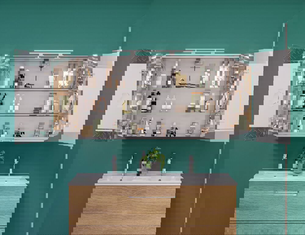Der Select Spiegelschrank ist viel mehr als nur ein Spiegelschrank - er ist Ihr persönliches Badezimmer-Upgrade. Wählen Sie Ihre eigenen Lampen und schaffen Sie die perfekte Beleuchtung, um Ihren Tag mit Stil zu beginnen. Mit dem Spiegelschrank erhalten Sie viel Stauraum und eine Steckdose im Inneren des Spiegelschranks für Ihre Elektrogeräte. Erleben Sie Komfort und Eleganz in Einem mit dem Select Spiegelschrank - Ihr täglicher Begleiter für einen strahlenden Morgen.