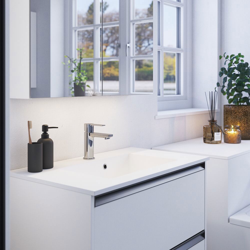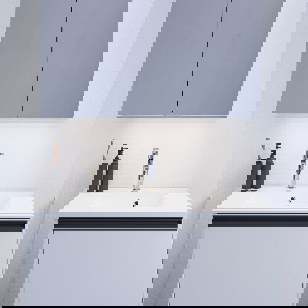 Mit dem Style Spiegelschrank erhalten Sie praktische Aufbewahrung und stilvolles Design. Der Spiegelschrank ist perfekt für die Aufbewahrung all Ihrer Cremes, Deodorants, Nagelscherer, Zahnbürsten und mehr. Fügen Sie dem Spiegelschrank eine Lampe hinzu und steuern Sie die Temperatur und die Stärke des Lichts mit einer einzigen Berührung. Der schöne Spiegelschrank verfügt über eine Magnetleiste, eine Metallablage, einen Vergrößerungsspiegel und eine Steckdose, die Ihre morgendliche und abendliche Routine viel einfacher macht. OBS: Für Produkte mit wahlfreie Farbe fällt eine Aufpreis (BI1) an. Einmalige Berechnung, unabhängig von der Anzahl der Elemente.