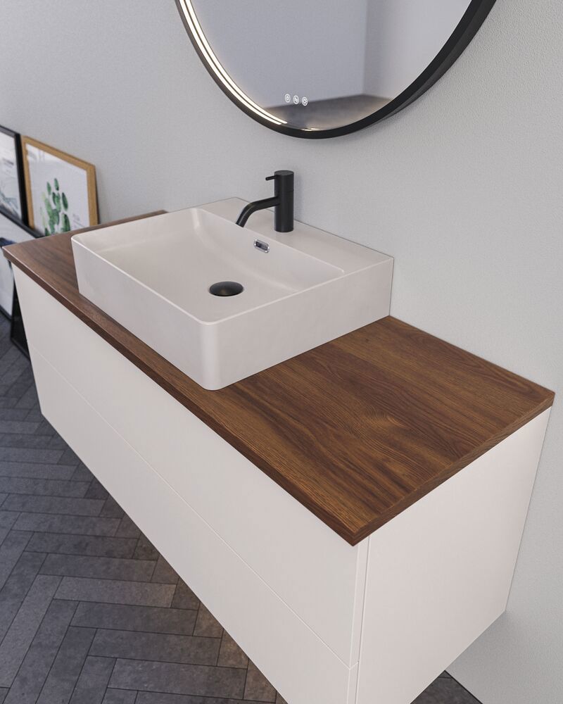Hier finden Sie eine Übersicht über die Waschtische, die zu dem von Ihnen gewählten Waschtischunterschrank passen. Denken Sie daran, eine Tischplatte zu wählen, wenn Sie sich für ein Aufsatzbecken entscheiden.