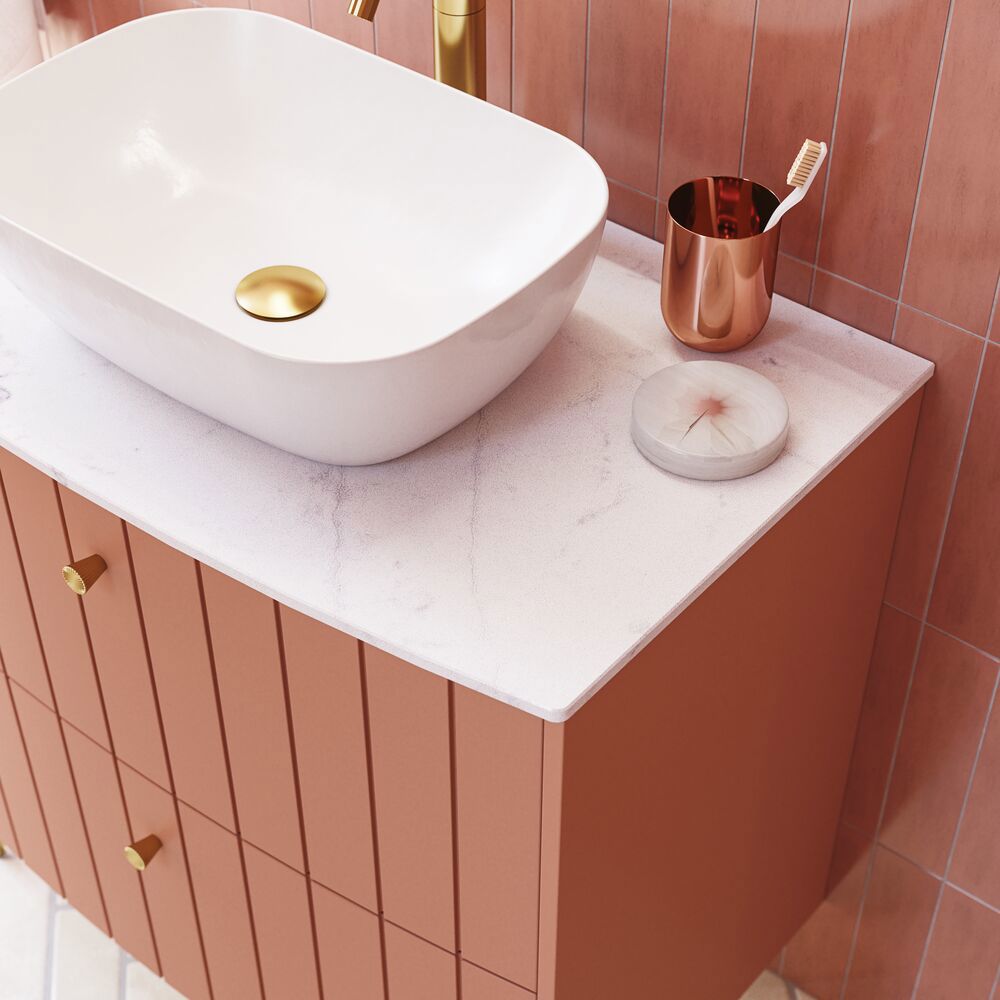 Hier finden Sie eine Übersicht über die Waschtische, die zu dem von Ihnen gewählten Waschtischunterschrank passen. Denken Sie daran, eine Tischplatte zu wählen, wenn Sie sich für ein Aufsatzbecken entscheiden.