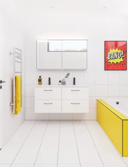Mit dem Spiegelschrank Top bringen Sie Ihren Morgen in Schwung. Dieser Spiegelschrank ist oben mit integrierter Beleuchtung ausgestattet, und im Inneren des Spiegelschranks finden Sie viel Stauraum und eine Steckdose mit Schalter. Sie bekommen also viel mehr, als Sie vielleicht erwarten. Die Seitenteile der Spiegelschrank sind selbstverständlich in schönen Farben erhältlich, so dass Sie den Spiegelschrank auf Ihre Badmöbel und den Rest des Badezimmers abstimmen können.