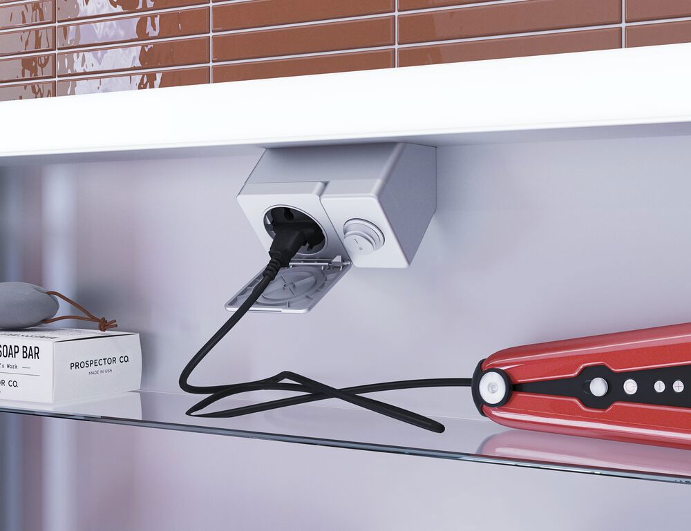 Mit dem Spiegelschrank Top bringen Sie Ihren Morgen in Schwung. Dieser Spiegelschrank ist oben mit integrierter Beleuchtung ausgestattet, und im Inneren des Spiegelschranks finden Sie viel Stauraum und eine Steckdose mit Schalter. Sie bekommen also viel mehr, als Sie vielleicht erwarten. Die Seitenteile der Spiegelschrank sind selbstverständlich in schönen Farben erhältlich, so dass Sie den Spiegelschrank auf Ihre Badmöbel und den Rest des Badezimmers abstimmen können.